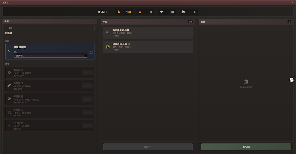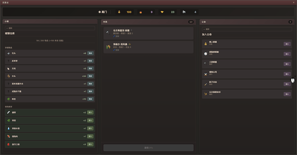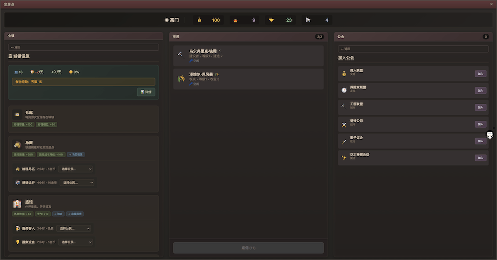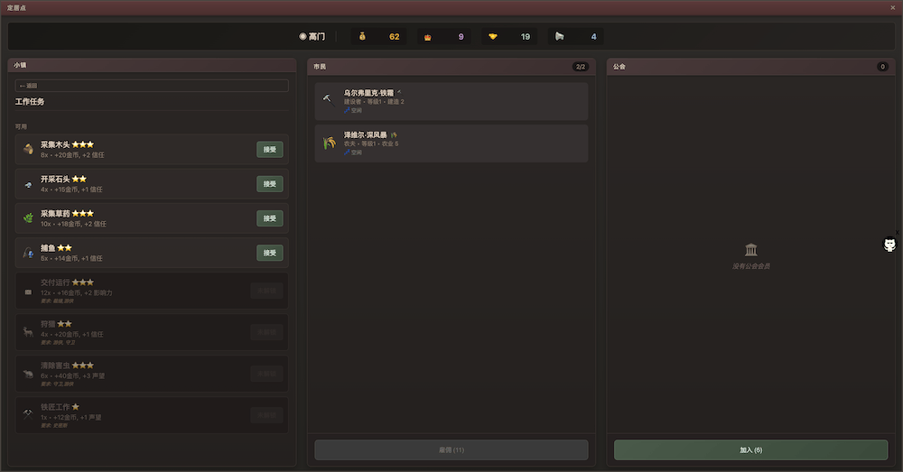 《权力公会》是一款城镇模拟与Roguelike游戏。游戏玩法融合了城镇模拟/战斗和Roguelike元素,例如程序生成的地图和永久死亡机制。