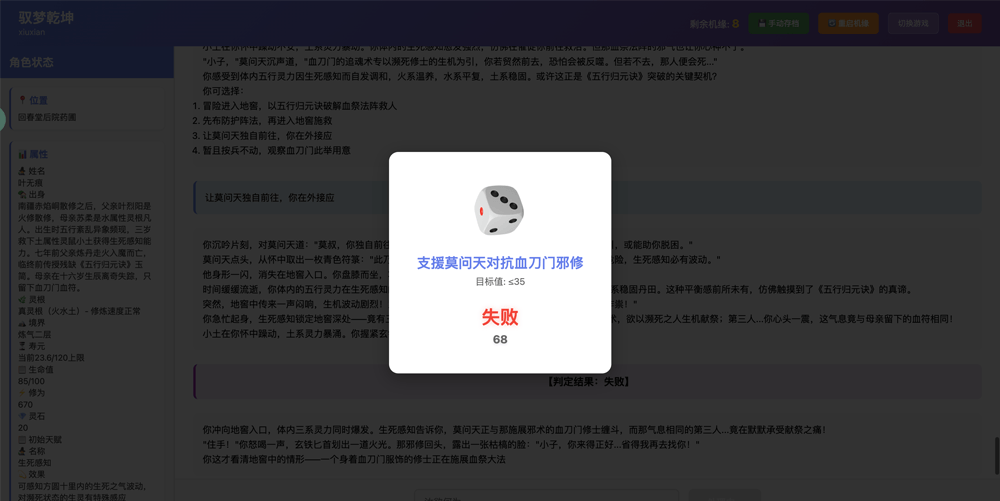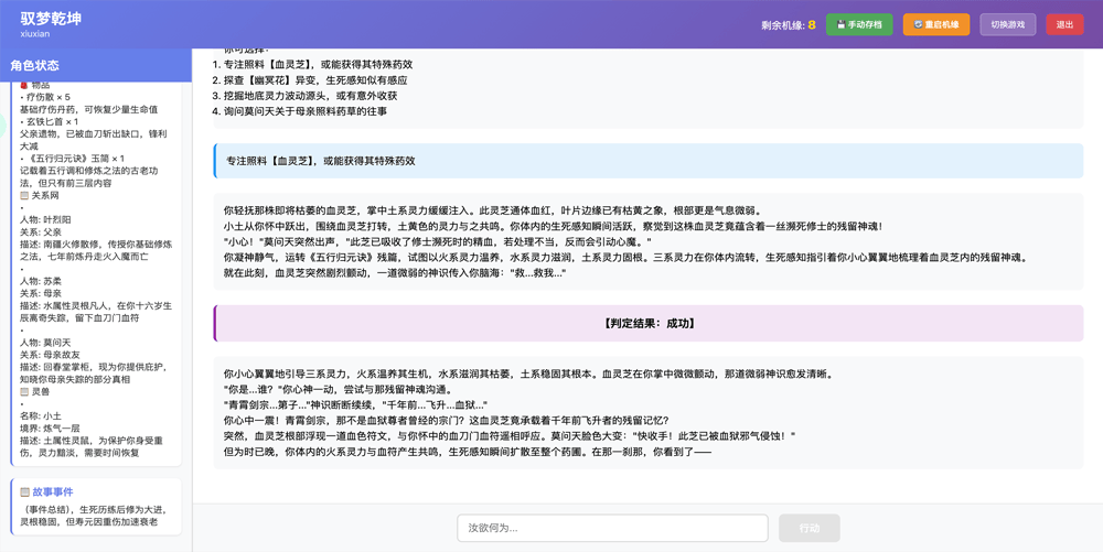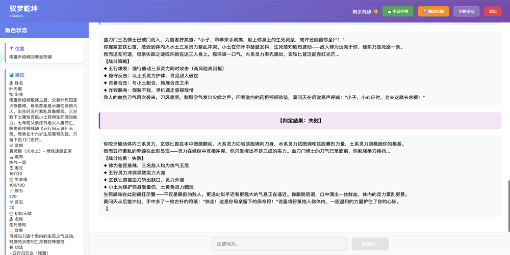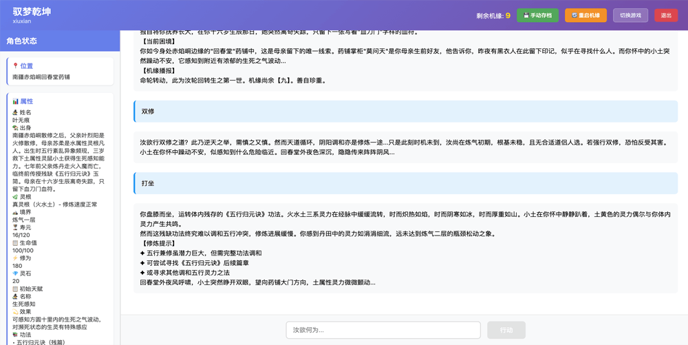 - 开始游戏无尽洪荒,文字MUD修仙游戏