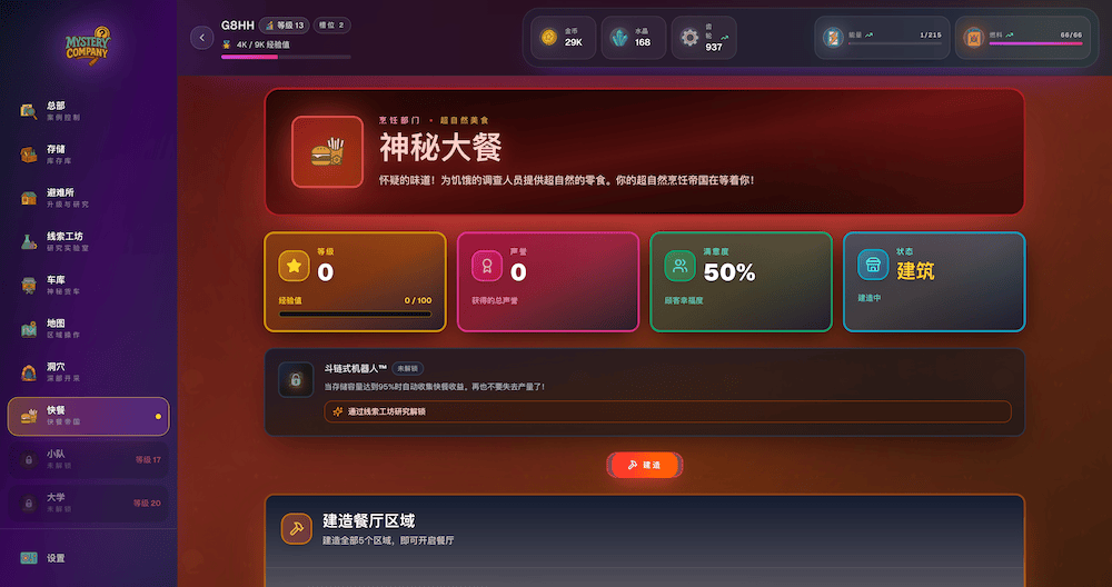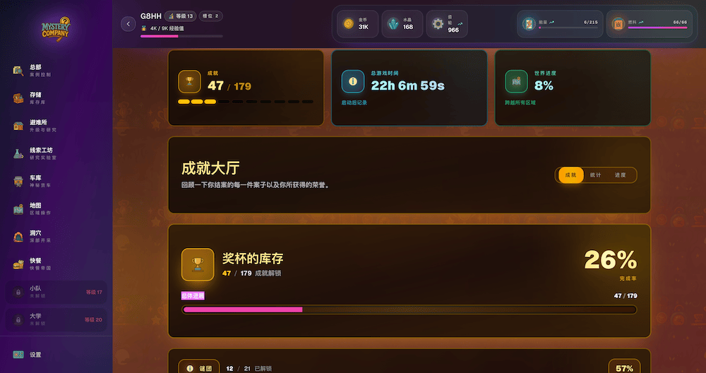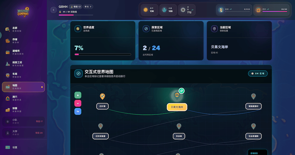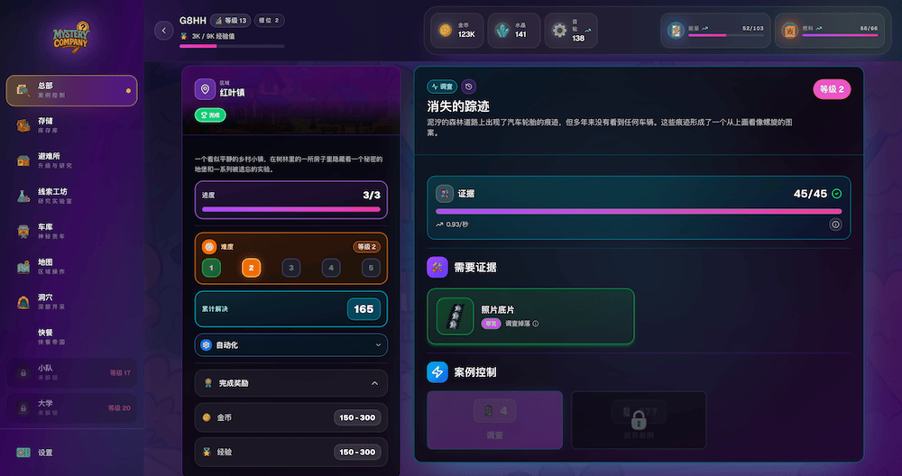 《谜团公司》是一款基于网页的放置/增量游戏,你将运营一个神秘组织,负责解决散落在世界地图不同区域的各种谜团。