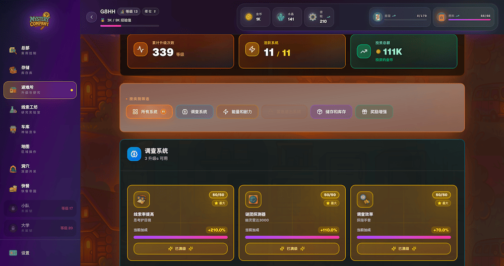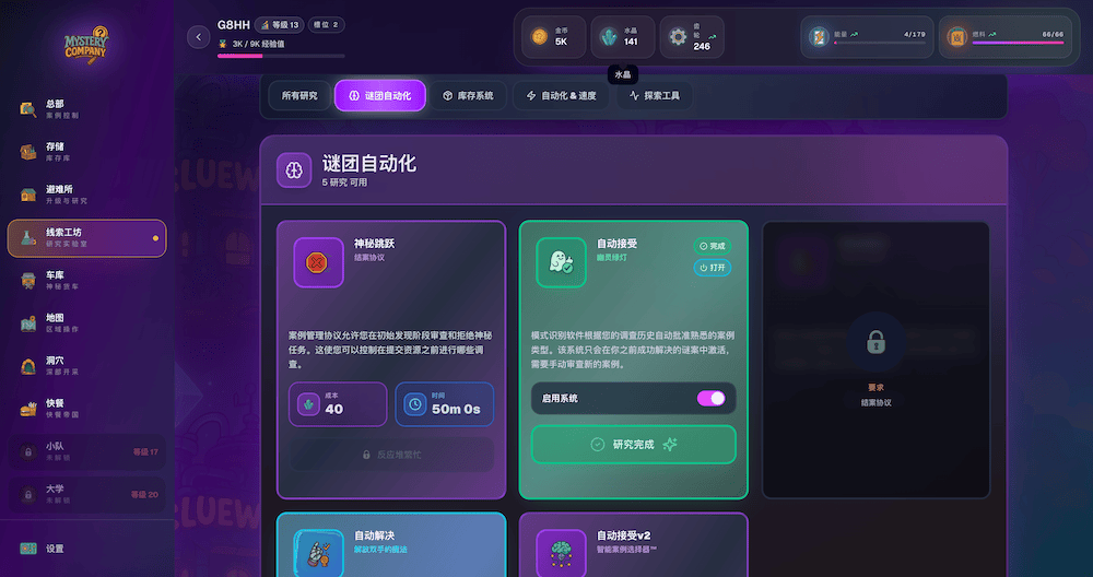 从线索收集到区域研究,所有功能即使在离线状态下也会继续运行(没错,即使关闭了游戏标签页)。