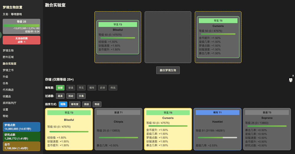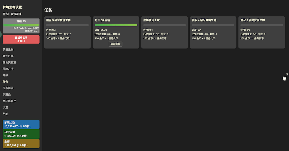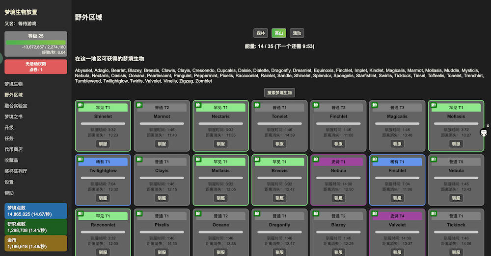首先在旷野地带驯服野生梦境生物,然后等待它们升级。当它们达到25级时,你可以将两只梦境生物融合,获得更强大的梦境生物。此外,还有增益道具(牧场)、每日任务和交易等方式。更多信息请查看帮助标签页。