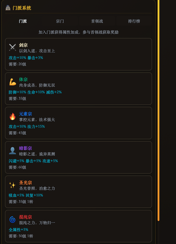 * 四大门派,各有所长