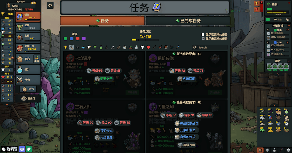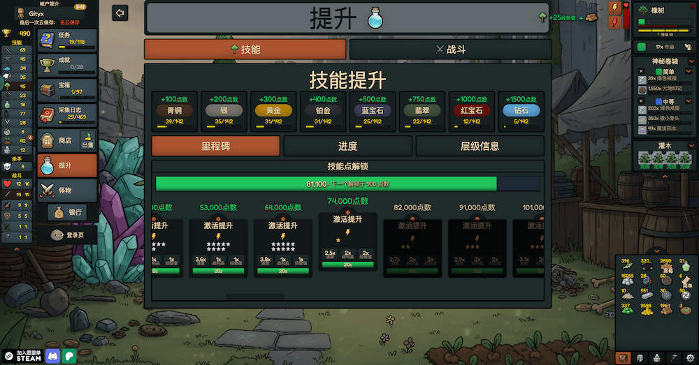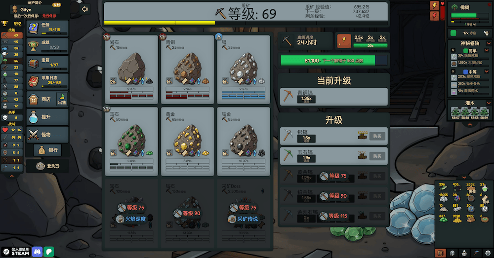 - 每个技能都有自己的用途,使用开采的岩石来锻造更强的装备,并增加你的最大命中率。