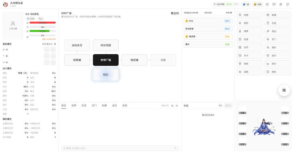 - 开始游戏无尽洪荒,文字MUD修仙游戏