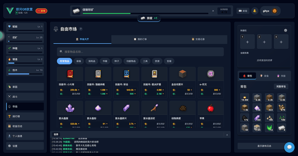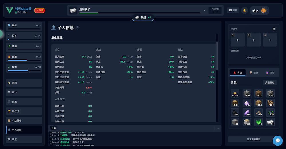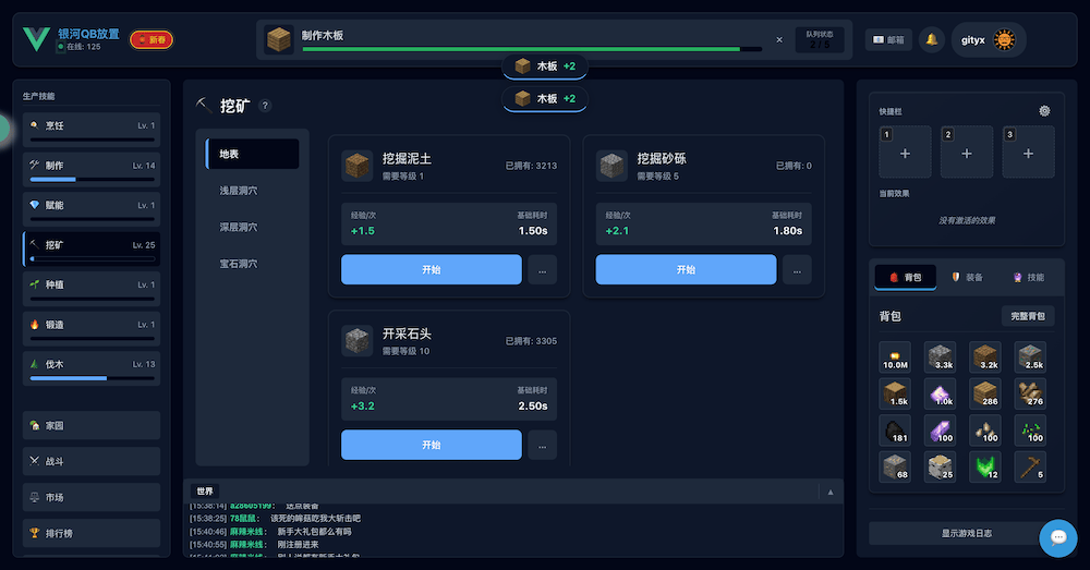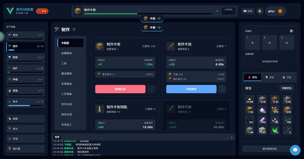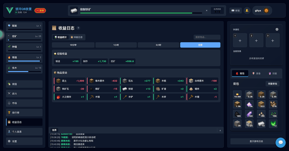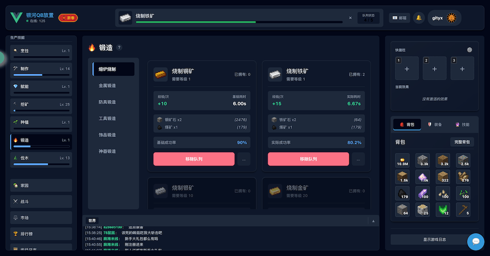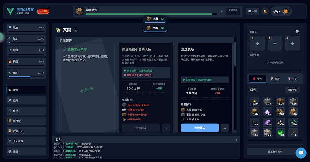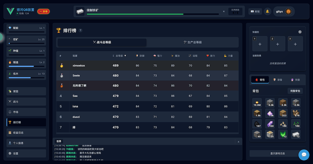和摸鱼放置不同,QB放置是采用类似银河牛牛的单队列放置,前期需以生产为主。