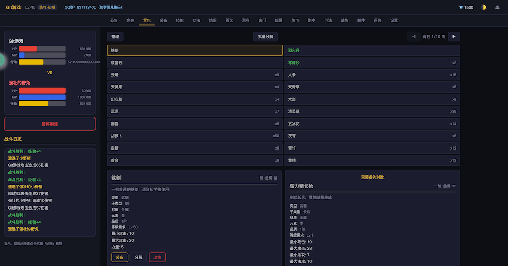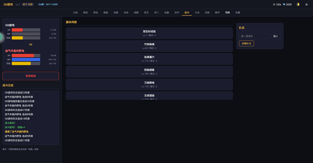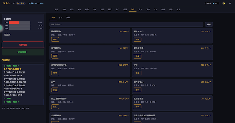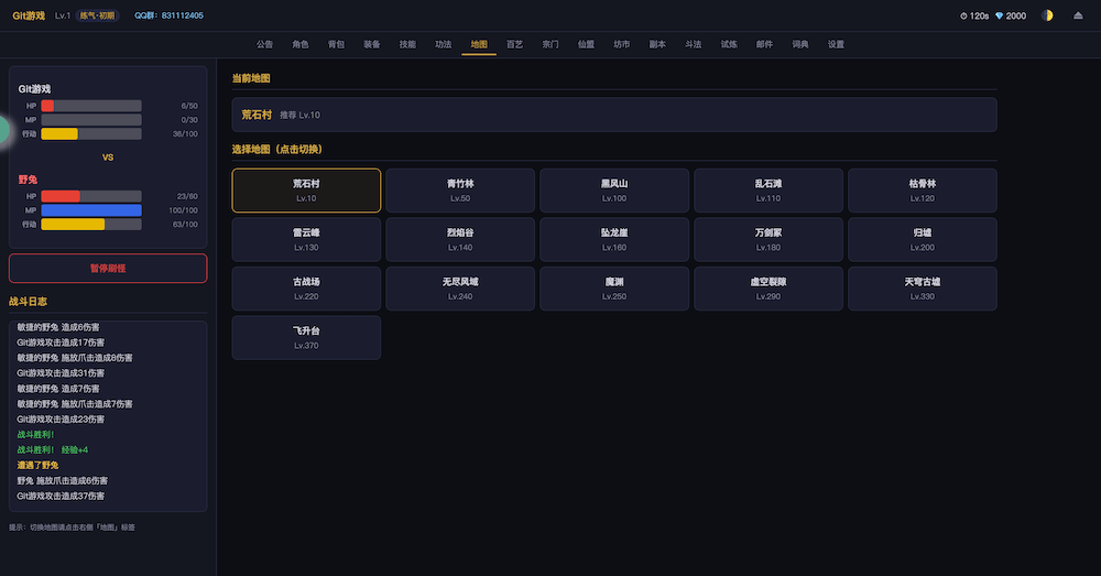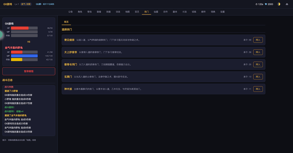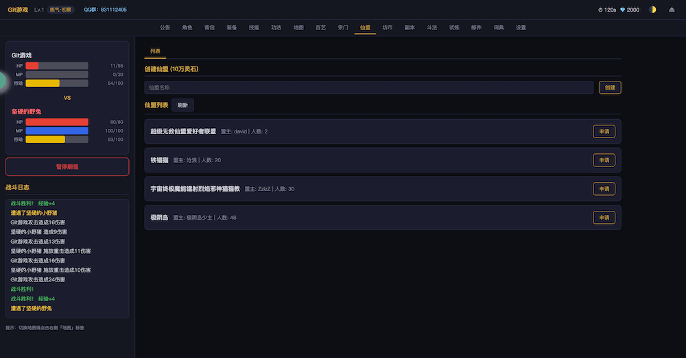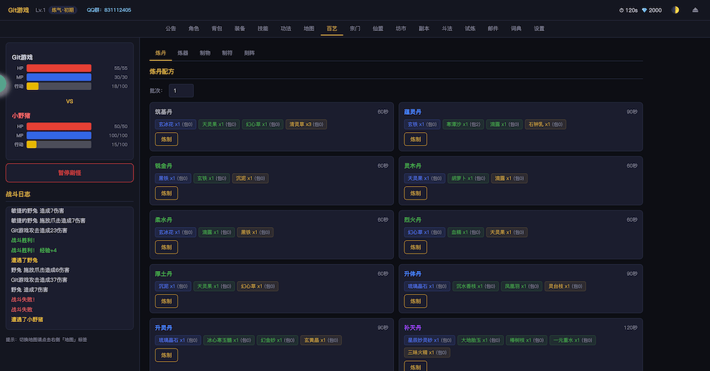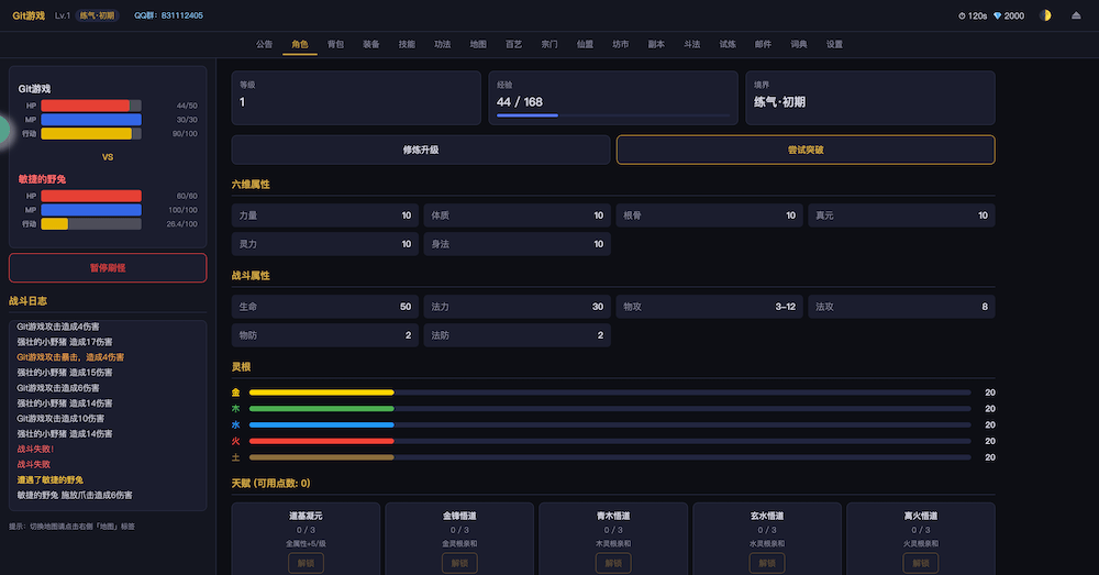 - 开始游戏无尽洪荒,文字MUD修仙游戏