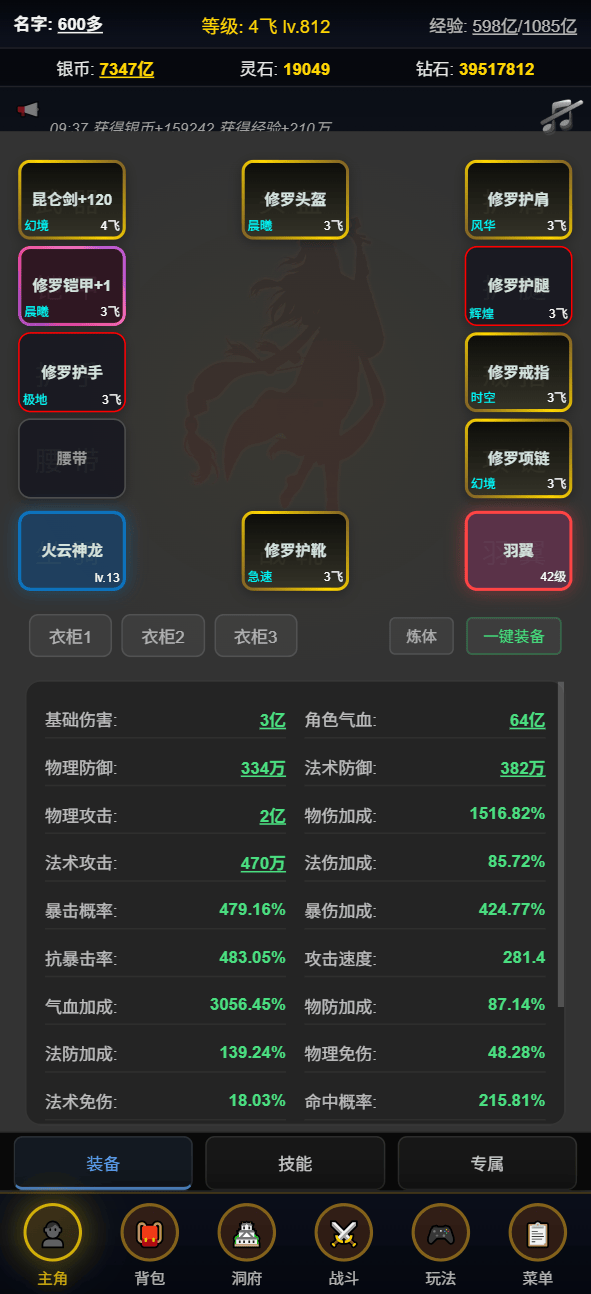【深度养成,属性自由成长】 攻击、防御、暴击、闪避、反射等核心属性全方位养成,装备锻造、技能升级、专属装备收集,打造独一无二的无敌角色。