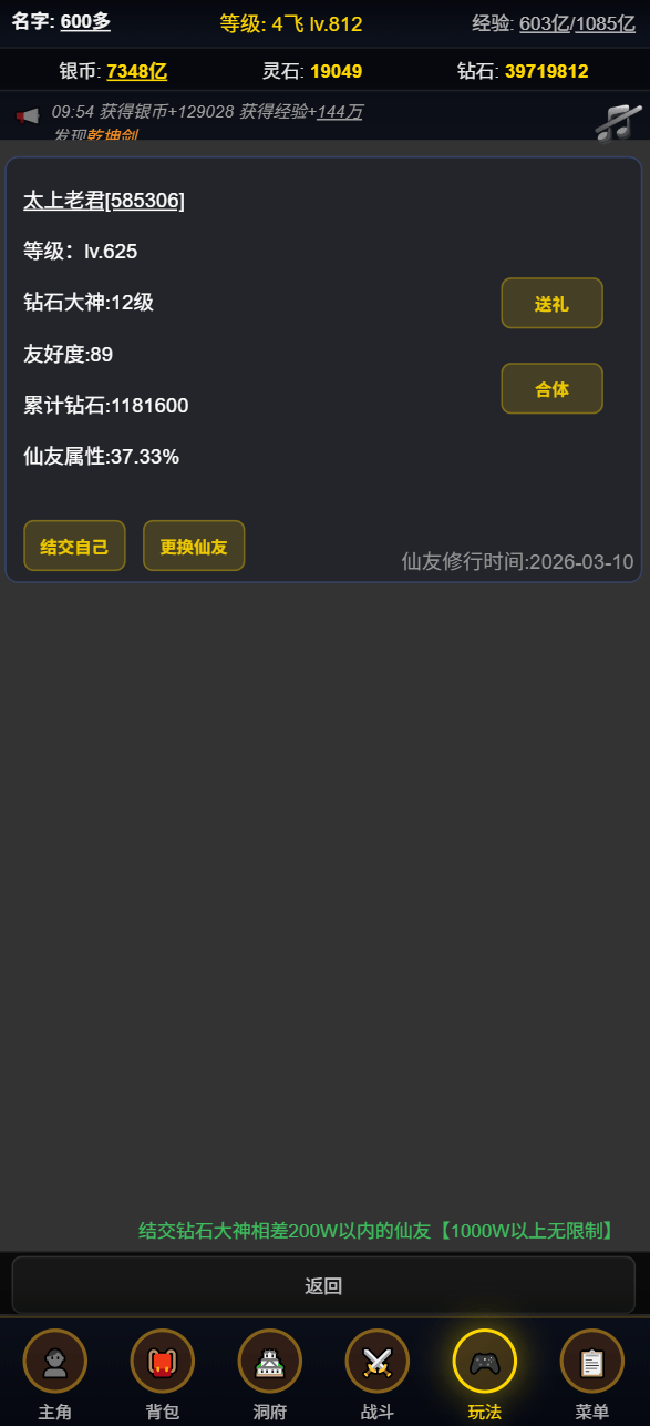 【结交仙友,享受队友增益】 结交仙友并肩作战,不同仙友拥有独特技能与属性加成,合理搭配让你的实力更上一层楼。