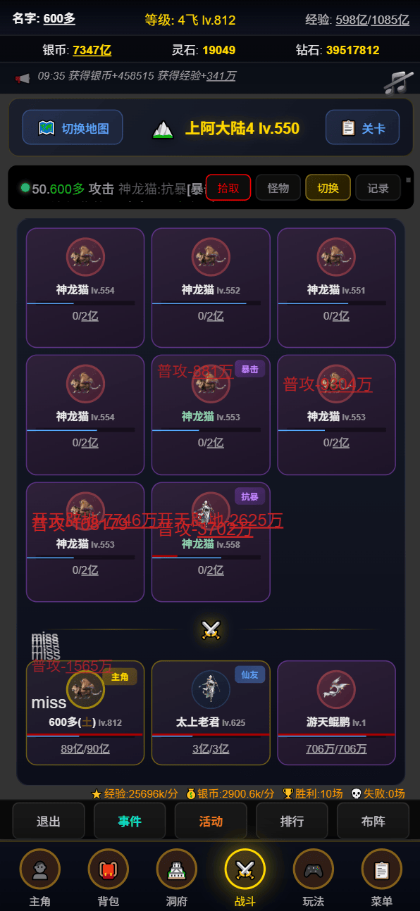 【极致战斗,亿级伤害爽爆】 自动刷怪、一键秒杀,体验暴击千万、伤害上亿的极致爽感。3×3 怪物网格同时战斗,效率拉满,资源滚滚来。