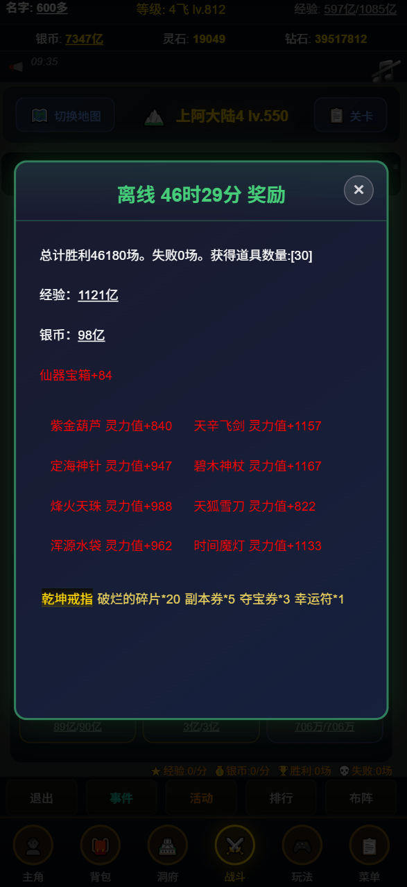 【离线挂机,睡觉也在变强】 独创离线收益系统,24 小时自动战斗、自动拾取,睡觉、工作、学习都能持续成长,上线即领丰厚收益,轻松享受修仙乐趣。