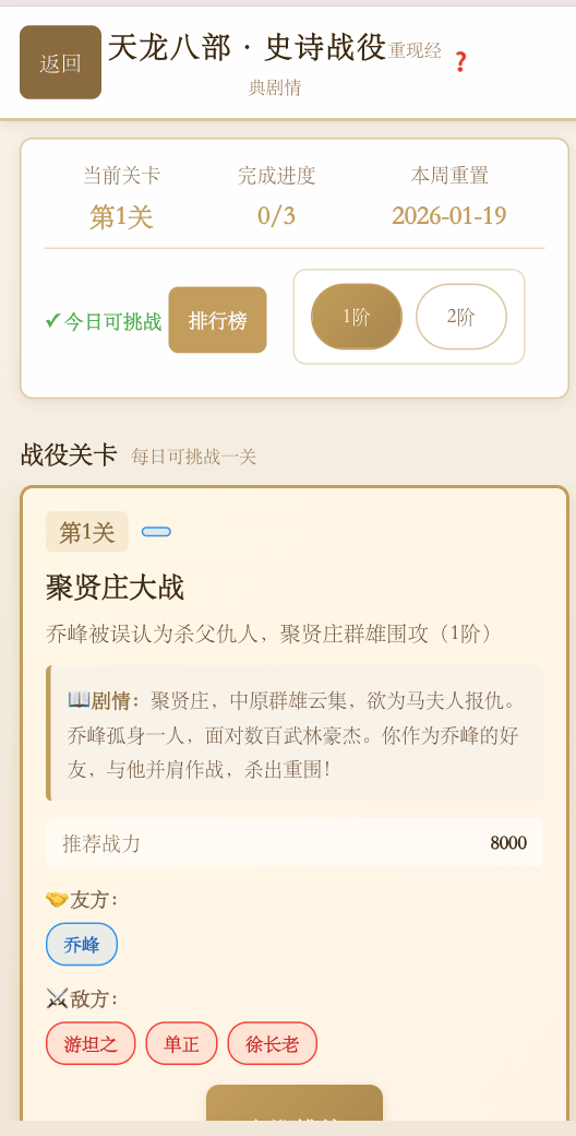 从北宋到元末,跨越百年的江湖传奇在此展开。你将见证萧峰的悲壮、郭靖的侠义、杨过的深情、张无忌的成长。修炼降龙十八掌、九阴真经、乾坤大挪移等百家武学,探索华山、少林、武当等名山大川,招募经典角色为侠侣,参与华山论剑、襄阳保卫战、光明顶大战等传奇剧情。